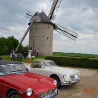 Dix équipages se sont retrouvés à Chassey-le-camp dans un hôtel perdu au milieu de nulle-part pour découvrir les paysages variés de cette Bourgogne du Sud avec les vignes du Chalonnais en limite du Beaunois au Nord-Est, les premières forêts du Morvan au Nord-Ouest et à l’Ouest, pour toucher au Clunisois au Sud et au Charollais. La prise de connaissance des équipages venus souvent d’assez loin (Belgique, Suisse, Nantes, …) se fait d’abord au niveau des voitures – surtout des MGB, mais une midget, une C, deux F et… une Morgan – puis autour d’une table fort sympathique dans une auberge le vendredi soir.