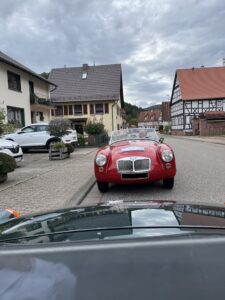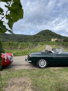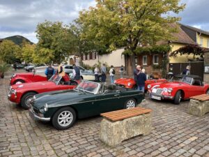 Vivre l’Alsace c’est découvrir des personnalités plus qu’amoureuses de leurs racines, adorant en faire découvrir la culture -y compris à leurs voisins lorrains 😉. C’est aussi l’occasion de se souvenir que nous sommes là à un carrefour international. Parmi les 11 équipages, 1 suisse venu de Genève avec une rarissime MG YT familiale, et 1 allemand en la personne de Bernhardt, responsable du club MG allemand pour la région Bade-Wurtemberg, avec sa femme dans leur MGA . Vivre l’Alsace c’est aussi devoir faire face à une gastronomie locale à laquelle les hôtes font particulièrement attention.