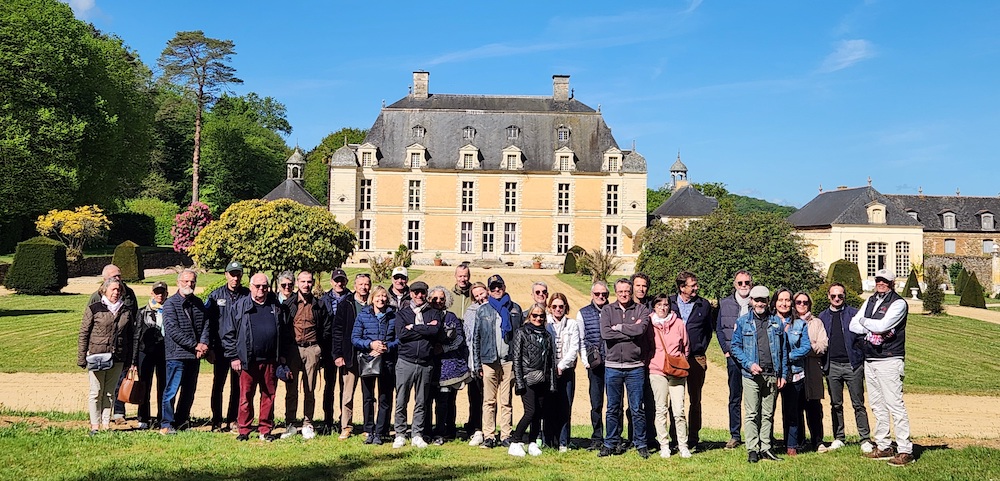 Après un café, thé, accompagné de chouquettes et l’appel de Philippe au son du clairon nous prenons la direction du château du Boschet, en empruntant d’agréables petites routes, cheveux au vent pour la grande majorité des MG’istes.