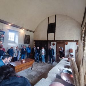 14H00 La visite du château démarre, notre guide la fille de la propriétaire nous raconte l’histoire de l’édification du domaine et des familles qui se sont succédées puis vient la visite des différentes salles avec leur spécificité telles que la cuisine et son piano en granit ou bien celle avec son armoire malouine et ses portraits sans oublier les salles avec les pièces en argent pour les dîners et repas.