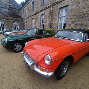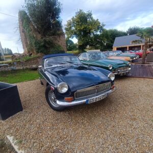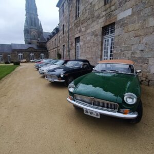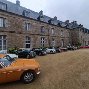12h15 le soleil nous quitte et c’est sous la pluie que nous pénétrons tous dans la cour du château, Phillipe durant le trajet avait pu obtenir l ‘autorisation d ‘exposer nos MG et ce à la grande satisfaction de tous.