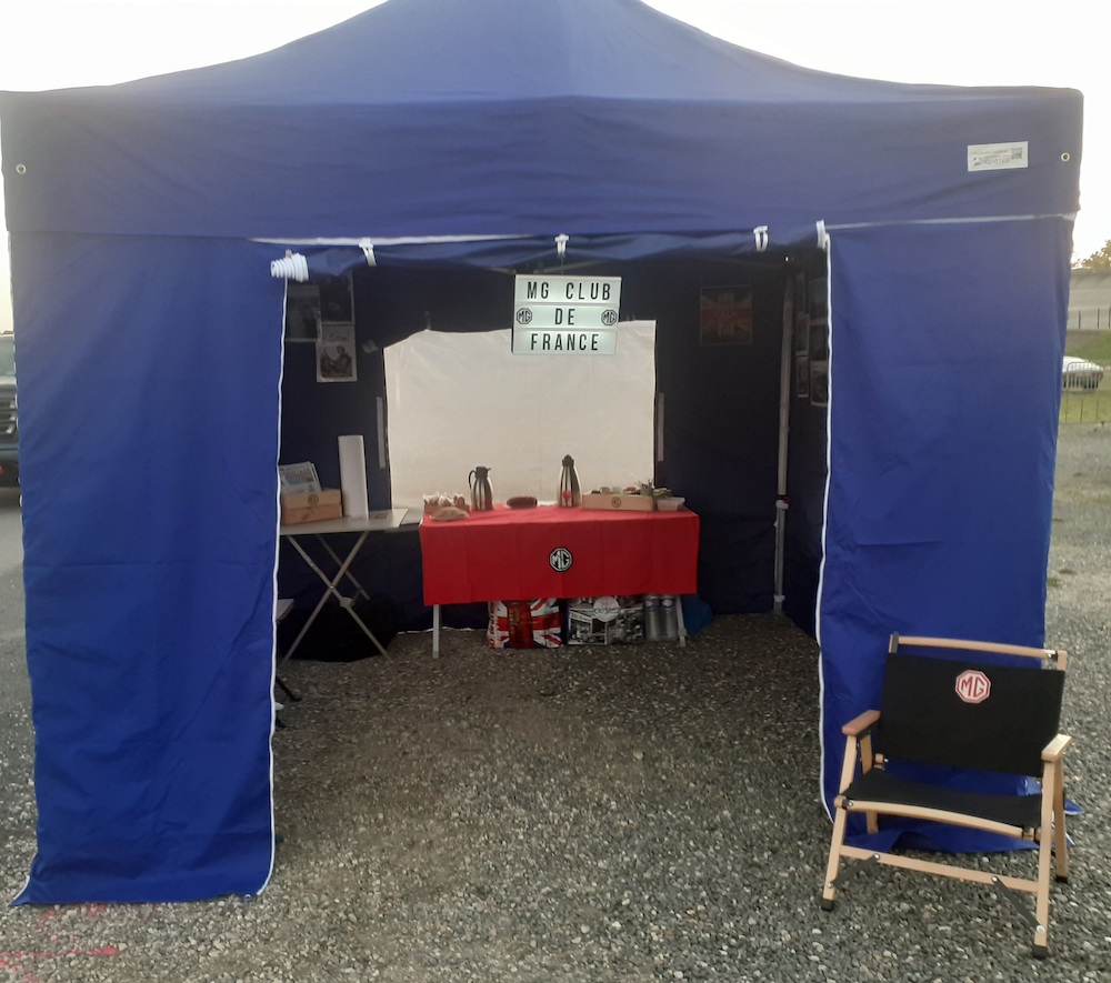 Sous la tente du club, où des photos en noir et blanc de la construction de l’anneau ornaient les pans, nous nous sommes régalés de crêpes maison avant de partager les spécialités de chacun pour le déjeuner (mention spéciale à la terrine de lapin de Michel).