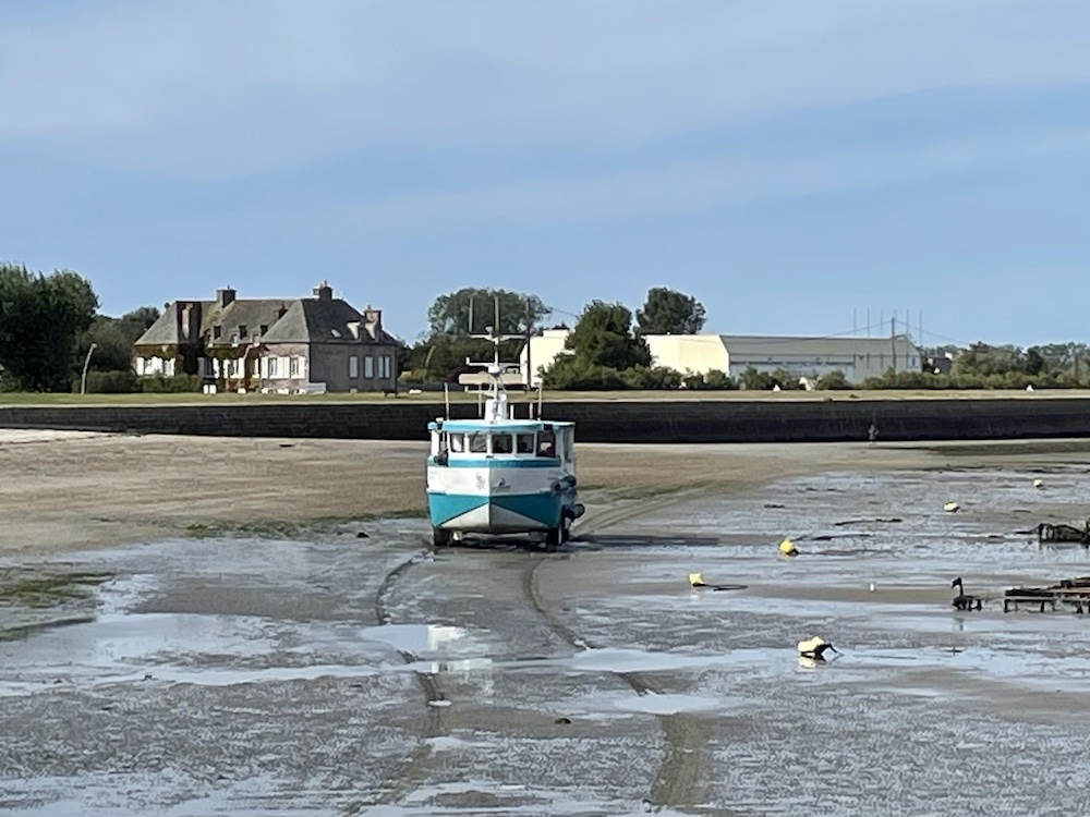 Nous avons ensuite traversé la presqu’île pour rejoindre SAINT VAAST LA HOUGUE où nous prenons le bateau amphibie pour nous rendre, en roulant au milieu des parcs à huîtres (et oui, il roule ou navigue, c’est selon la marée), sur l’île de TATIHOU.