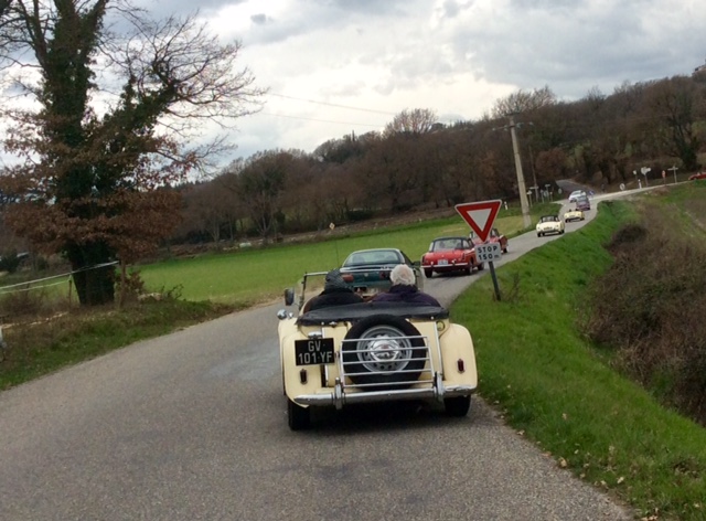 Au départ à côté de Manosque (ville natale de Jean Giono), nous étions 25 équipages à nous retrouver et pour les nouveaux faire connaissance autour d’un apéritif de bienvenue, après le briefing, la remise des plaques de Rallye et du Road Book, nous sommes tous conviés au déjeuner.