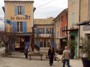 L’après-midi nous avions 60 kms à parcourir, nous prenons la route vers le village de Banon à la découverte des spécialités locales, visites et dégustations à la chocolaterie ainsi qu’à la fromagerie de Banon ( célèbre pour son petit fromage AOP dans sa feuille de châtaigniers), suivi d’une visite à la célèbre librairie » Les Bleuets »( 5ème plus grande librairie française et la 1ère en rural) où une considérable variété d’ouvrages contribue à sa réputation nationale.