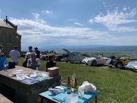 En cette journée ensoleillée du 27 juin et pour honorer la JNVE (Journée Nationale des Véhicules Anciens), nous étions 13 MG à partir de Vienne en Isère. Pause « casse-croute » sur le trajet à Notre Dame de Sciez, avec un très beau panorama.