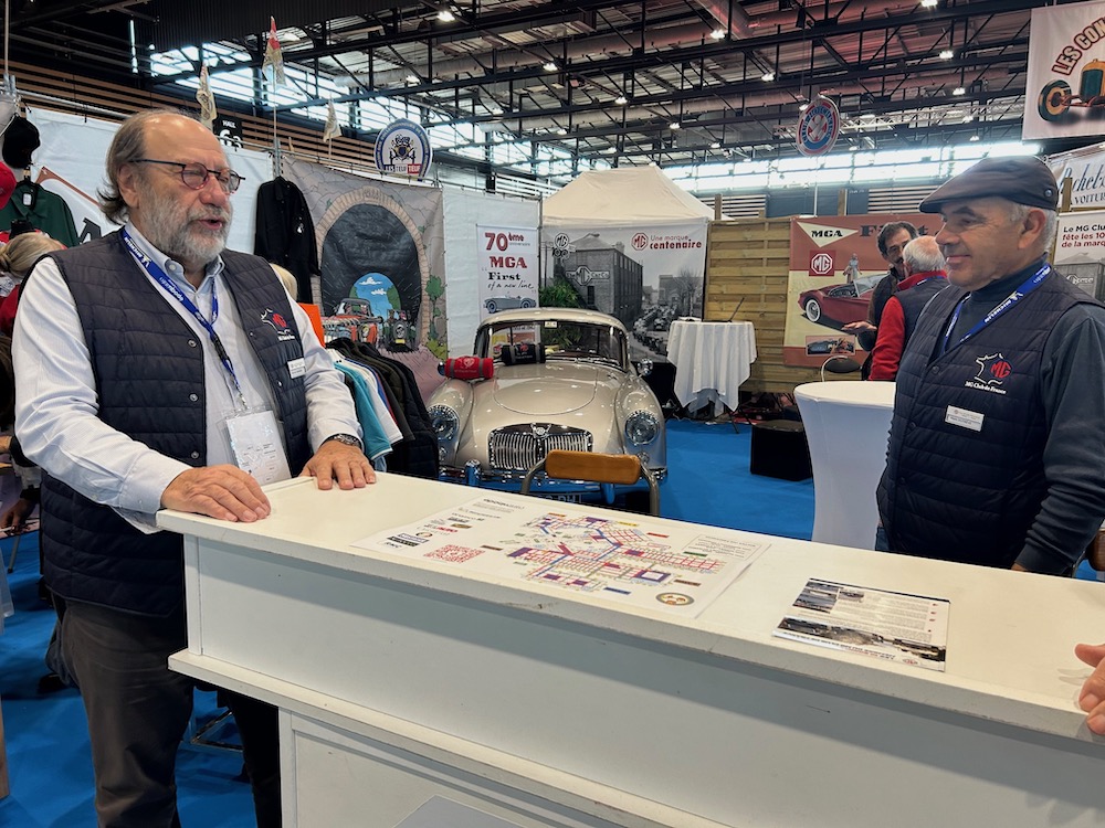 Beaucoup de monde sur le stand MGCF, adhérents, personnes processeur d’une voiture à l’octogone intéressées par la vie du club et par les renseignements donnés par les membres présents.