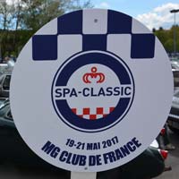 Le samedi, c’est le circuit de Spa qui nous attend et le programme des courses historiques. Le ciel bleu du matin vire rapidement au gris, accompagné d’un petit crachin peu encourageant et le petit déjeuner se prolonge, enfin nous partons, la pluie a cessé ! Déjà beaucoup de monde, mais nous arrivons au parking MG club de France, rejoint par Alain Danoy et son fils Grégoire à bord de leur cab B V8. Une kyrielle de clubs est présente (Porsche, Triumph, 205 GTI et autres Corvette, Datsun).